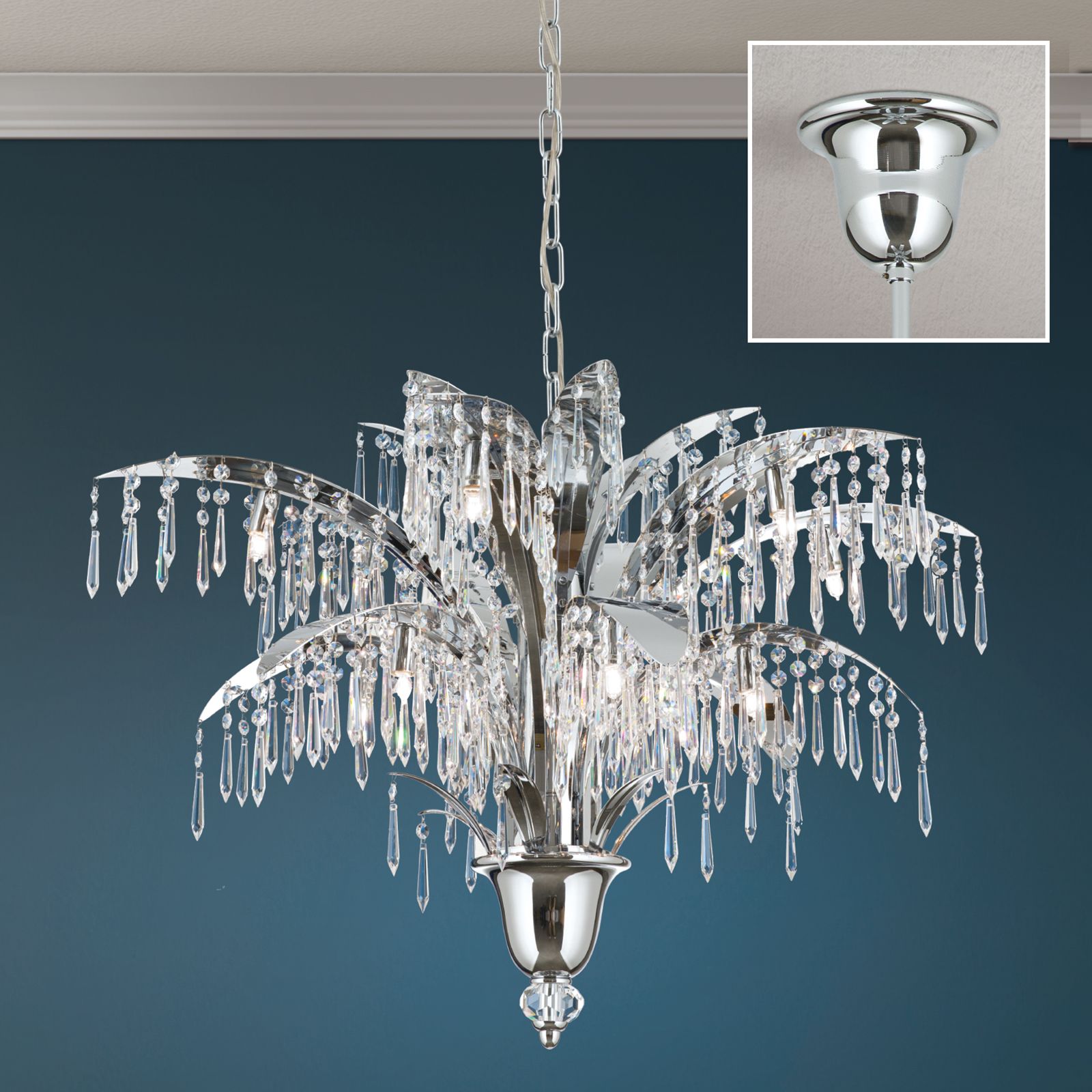 Chandelier PALME with 12 lamps, chrome plated