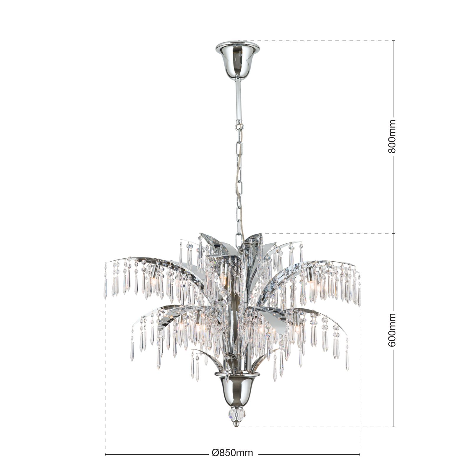 The chandelier's stunning chrome finish gives it a timeless, modern shine that perfectly complements a variety of interior styles. The PALME chandelier is not only a lighting element, but also a decorative work of art that enhances any interior.