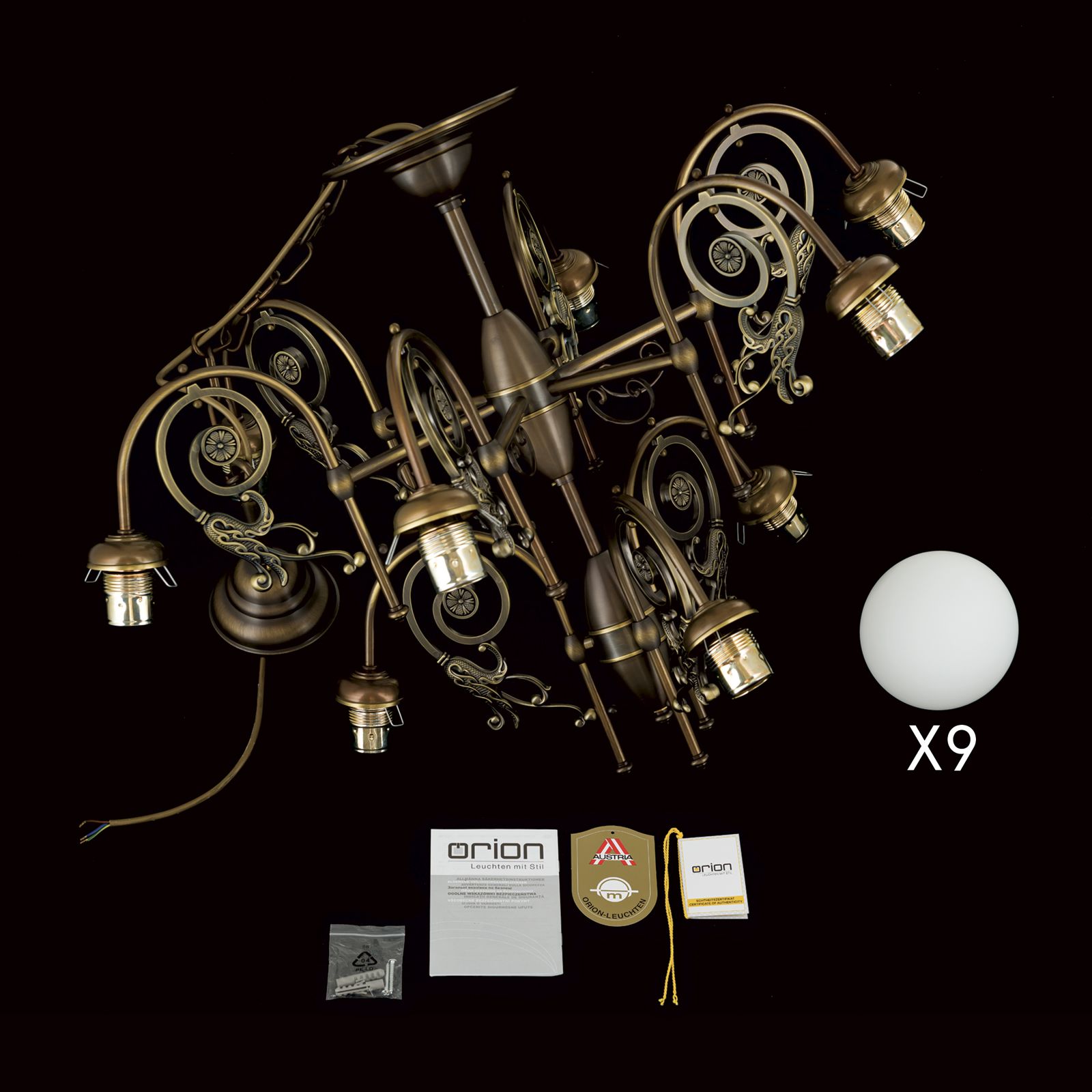 Chandelier RINGSTRASSE, 9 lamps, antique brass finish with opal glasses