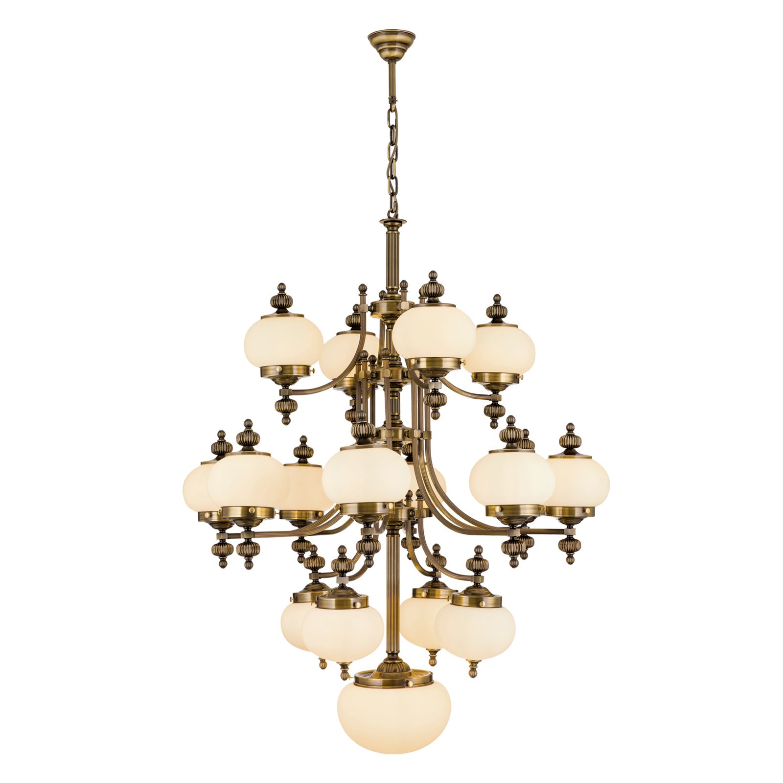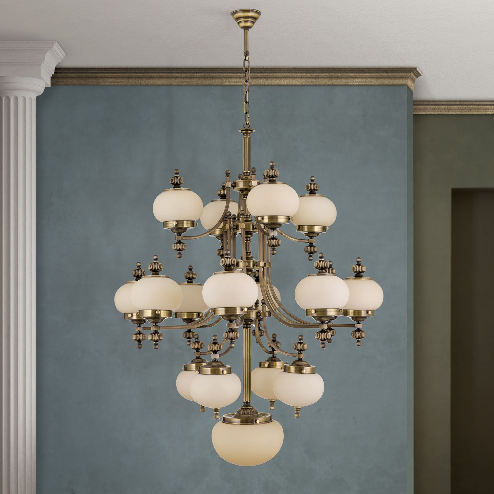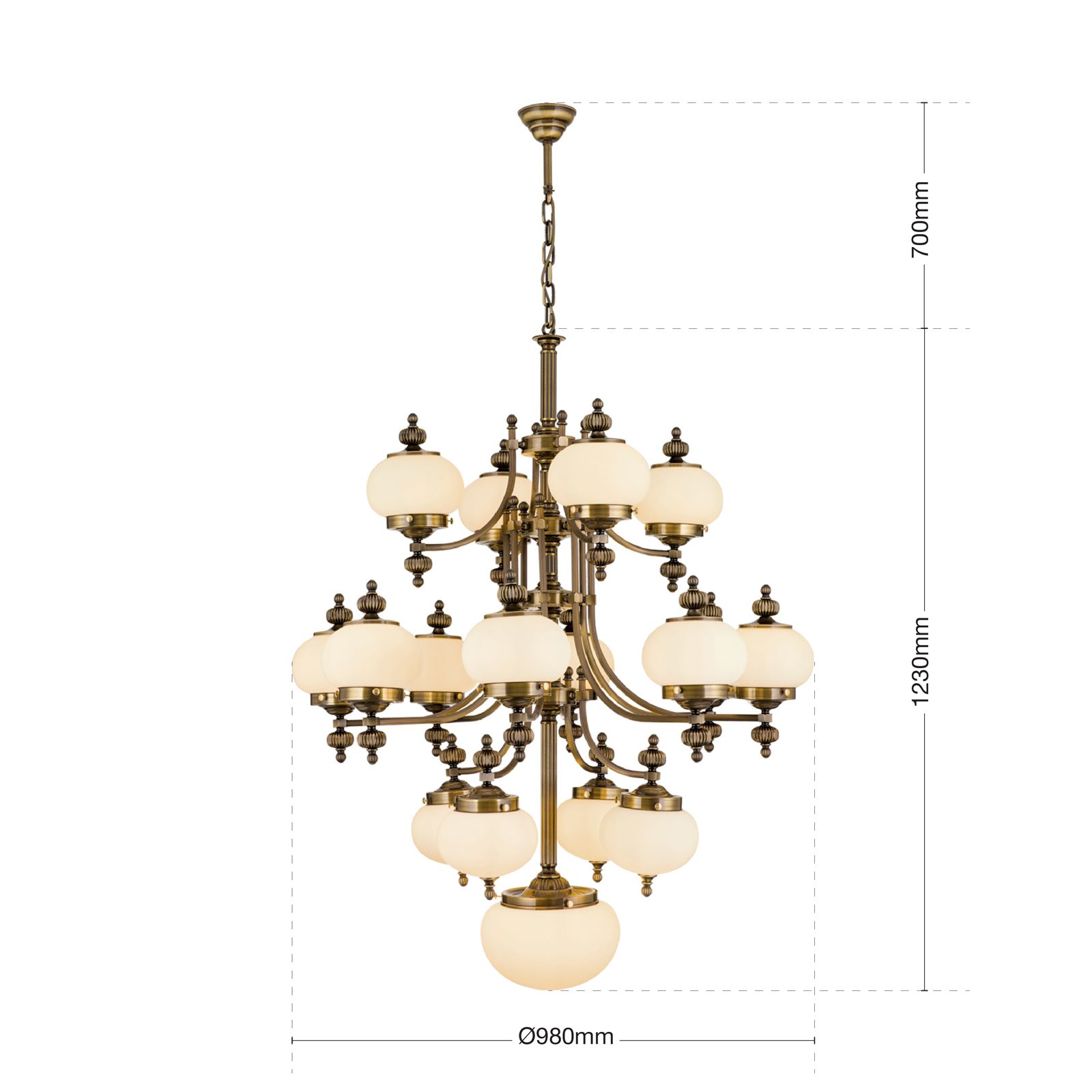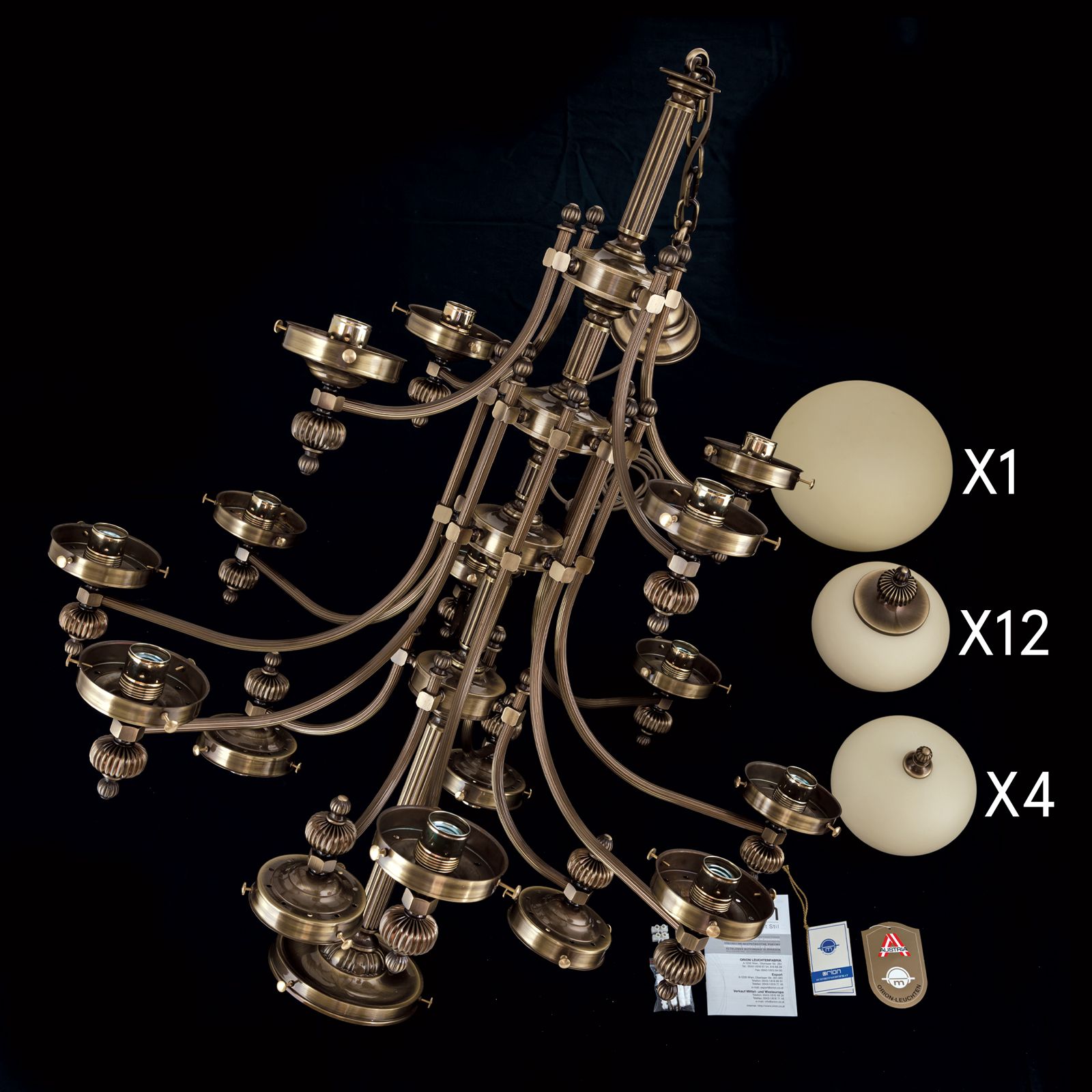 Chandelier WIENER NOSTALGIE, 4+8+4+1 lamps, antique brass finish, upwards, champagne coloured glasses