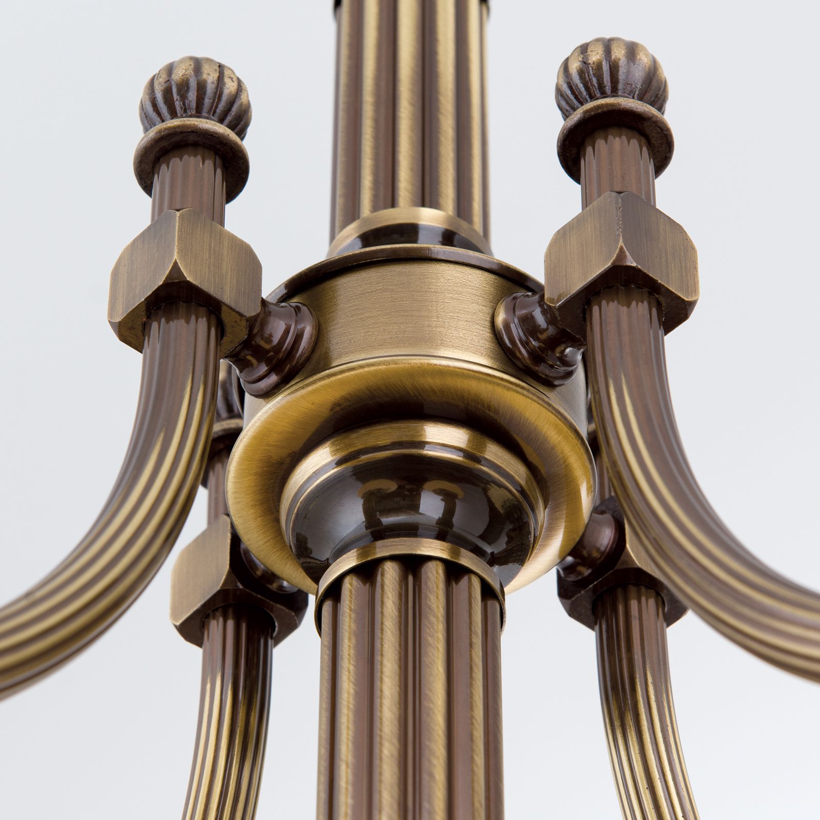 Chandelier WIENER NOSTALGIE, 4 lamps, antique brass finish, downwards, champagne coloured glasses