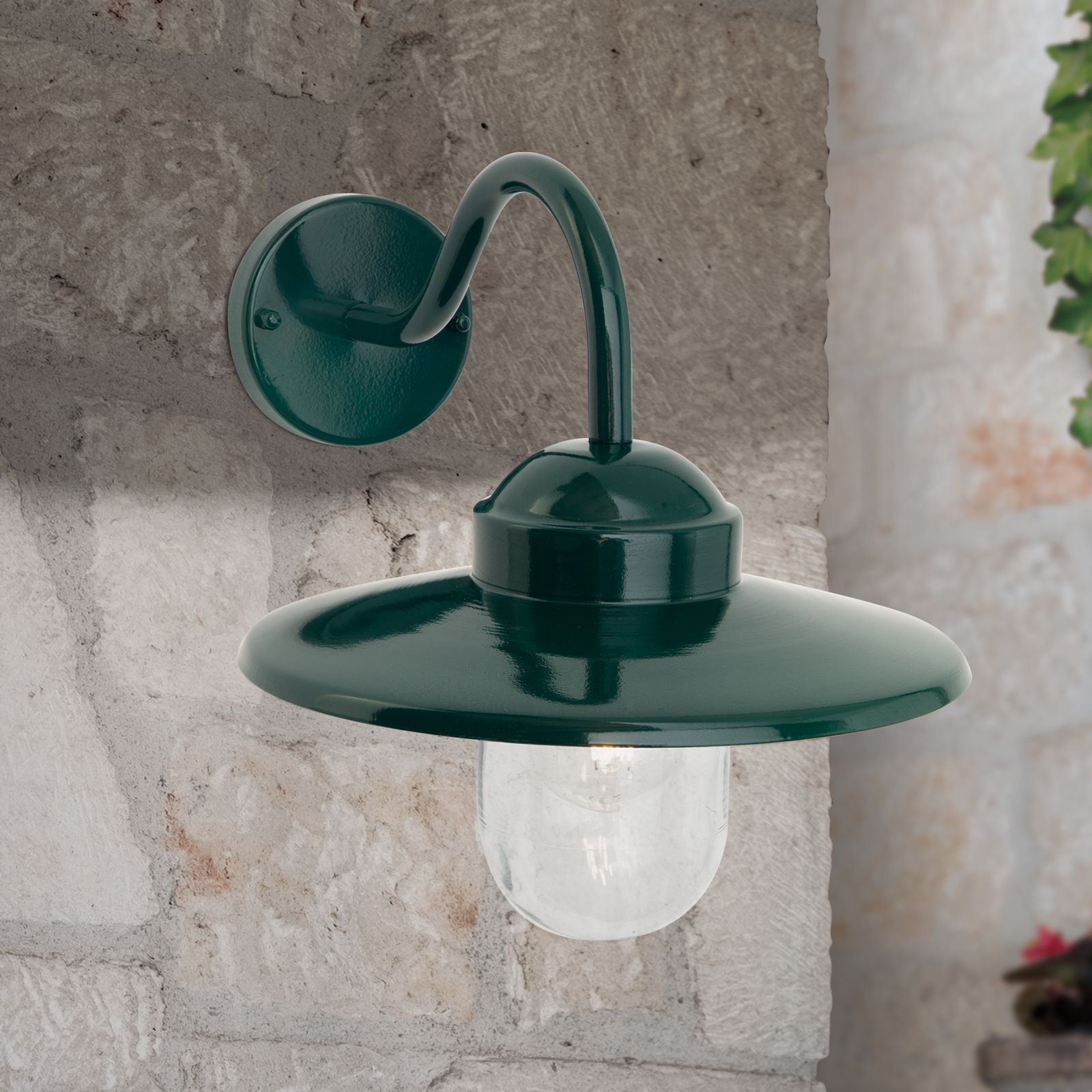 EDWARD is sure to become an eye-catcher on your house wall due to its vintage-style appearance. Whether stone, wooden or plastered wall EDWARD stands out from its surroundings and provides the necessary light to guide you safely through the night. With protection class IP44, the wall light offers protection against splashing water from all directions and is thus perfectly suited for outdoor use. The finish in anthracite or dark green is completed with a lush glass dome that protects the bulb from wind and weather. The E27 socket accepts lamps with a maximum of 60 watts.