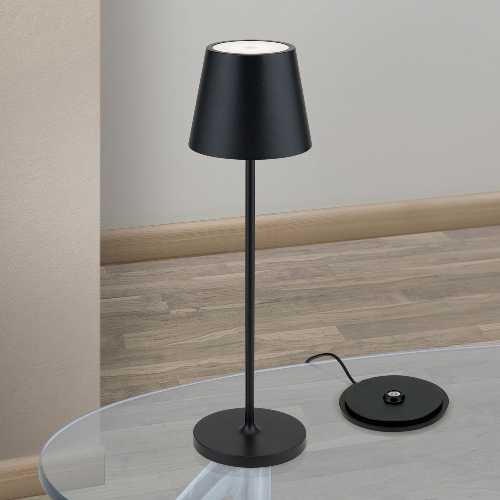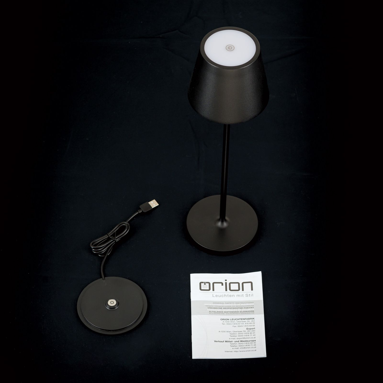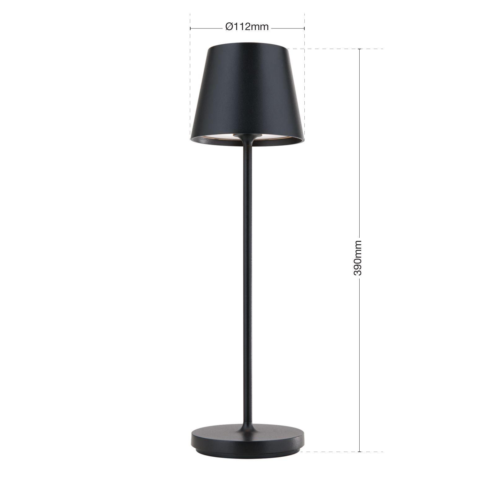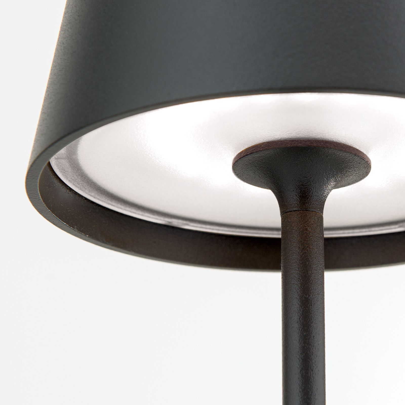 The battery CHANDELLE table lamp impresses with its minimalist design, where the focus is on function. It is charged in a flash by the integrated USB docking station and can optionally be set up without a cable. The warm white light (3000 Kelvin) is evenly emitted through an opal matt cover, which is attached to the top and bottom of the lampshade. CHANDELLE is available in numerous colours: black, white, anthracite and rust brown. Equipped with the protection class IP54, it is suitable for damp rooms such as a bathroom, where it can be used as an additional light source or simply as a nice background lighting during a relaxing bath. On the terrace or in the garden, it is the perfect mobile light source to accompany you through the night. It is a portable LED battery light for indoor or outdoor use.