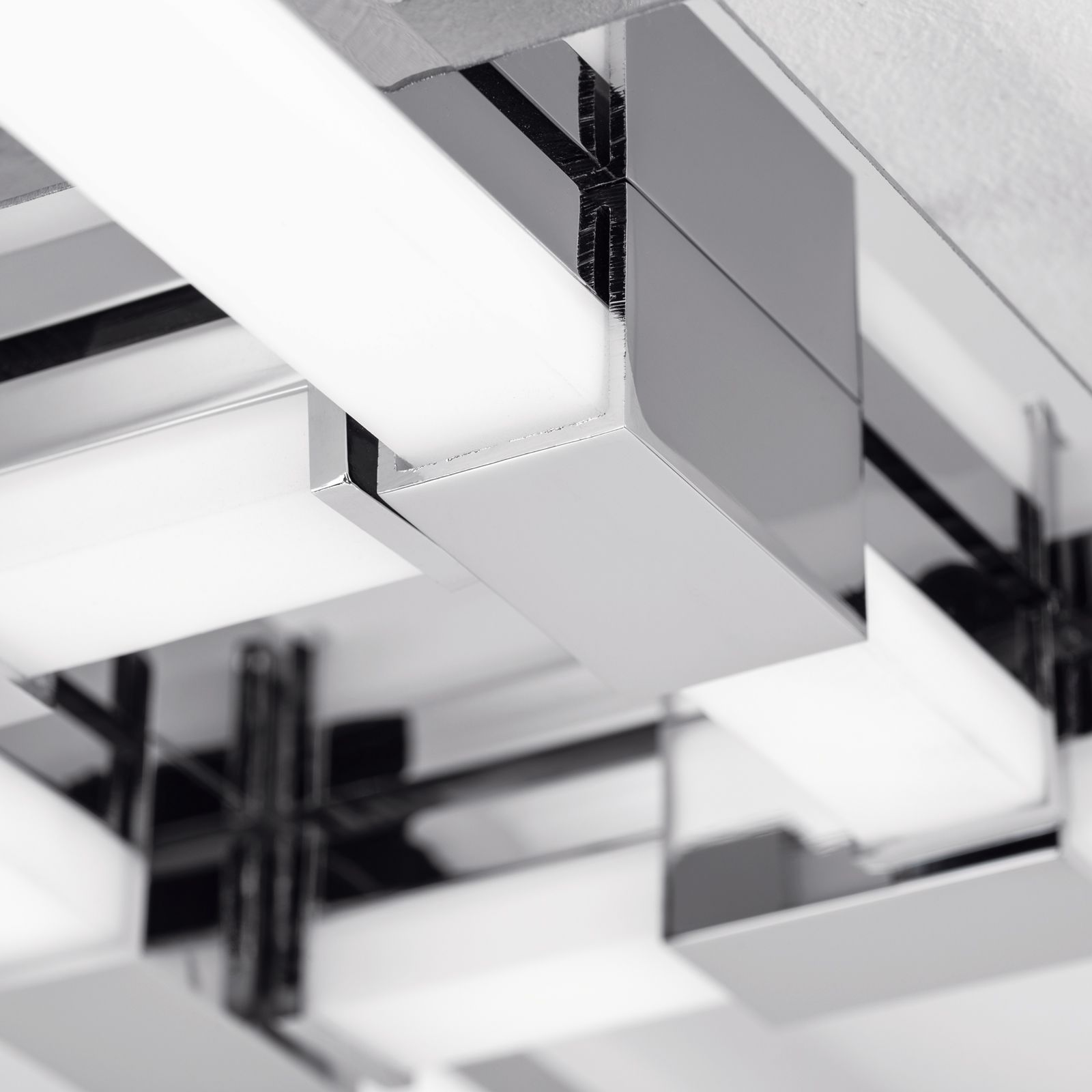 ARGO's modern appearance with chrome-plated steel and four flames arranged at right angles let it stand out from standard bathroom ceiling lights. Its 27 watts output make it ideal for sizable bathrooms' basic illumination.