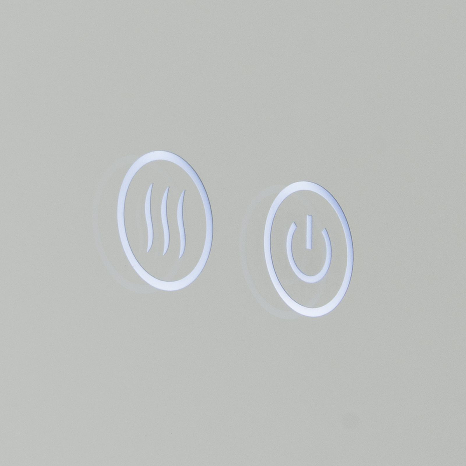 The mirror is equipped with an anti-fog function that prevents fogging. This function can be activated with a quick tap and remains switched on for 10 minutes before switching off automatically. The mirror also has a memory function that remembers the last light and colour temperature setting. The next time it is switched on using the wall switch, this setting is automatically restored.