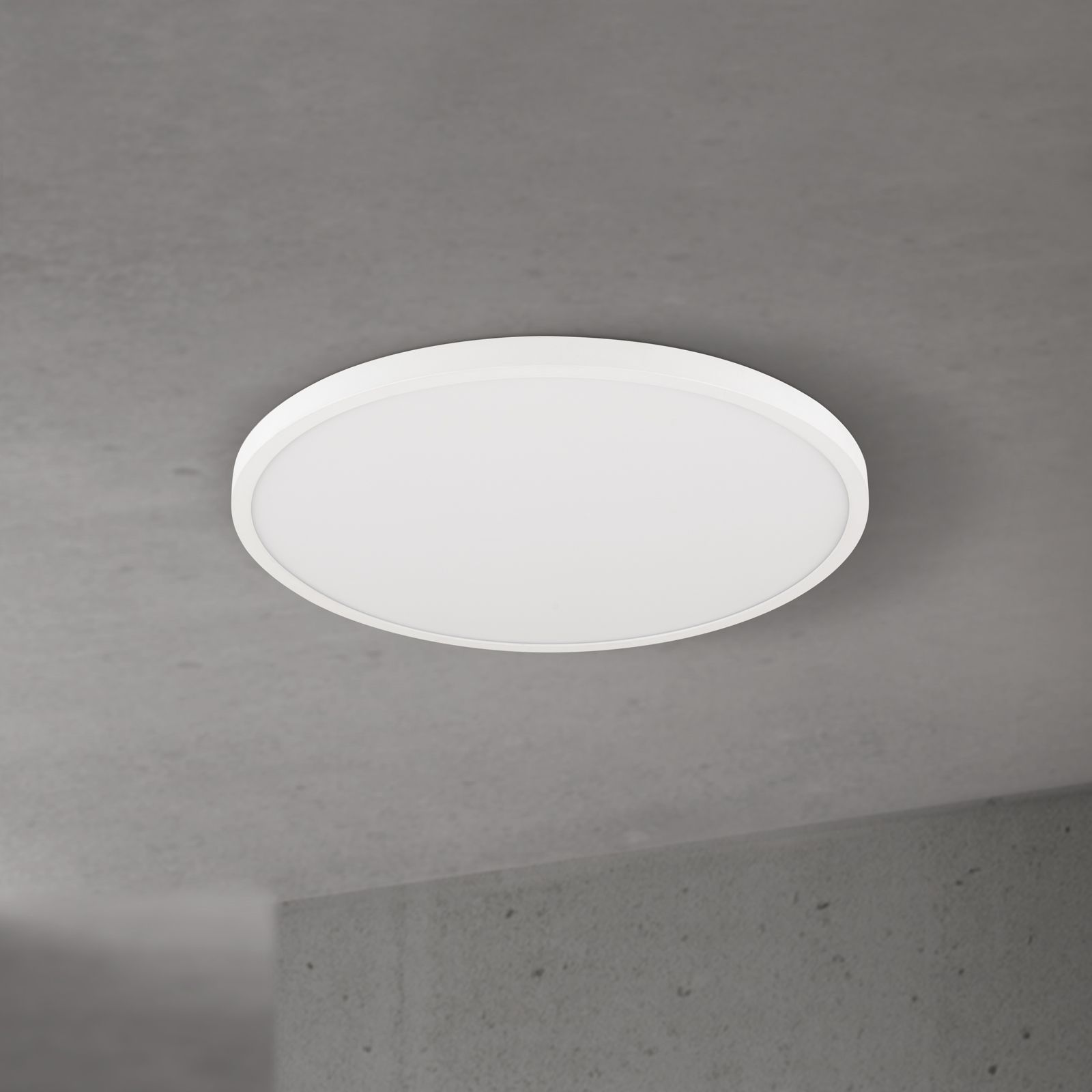The DISC LED panel impresses with its purist, modern design and impressive overall performance. With a diameter of 60 cm and an ultra-flat height of just 2.4 cm, the luminaire blends discreetly and elegantly into any room - perfect for the living room, dining room, kitchen, bedroom, study/office or hallway.