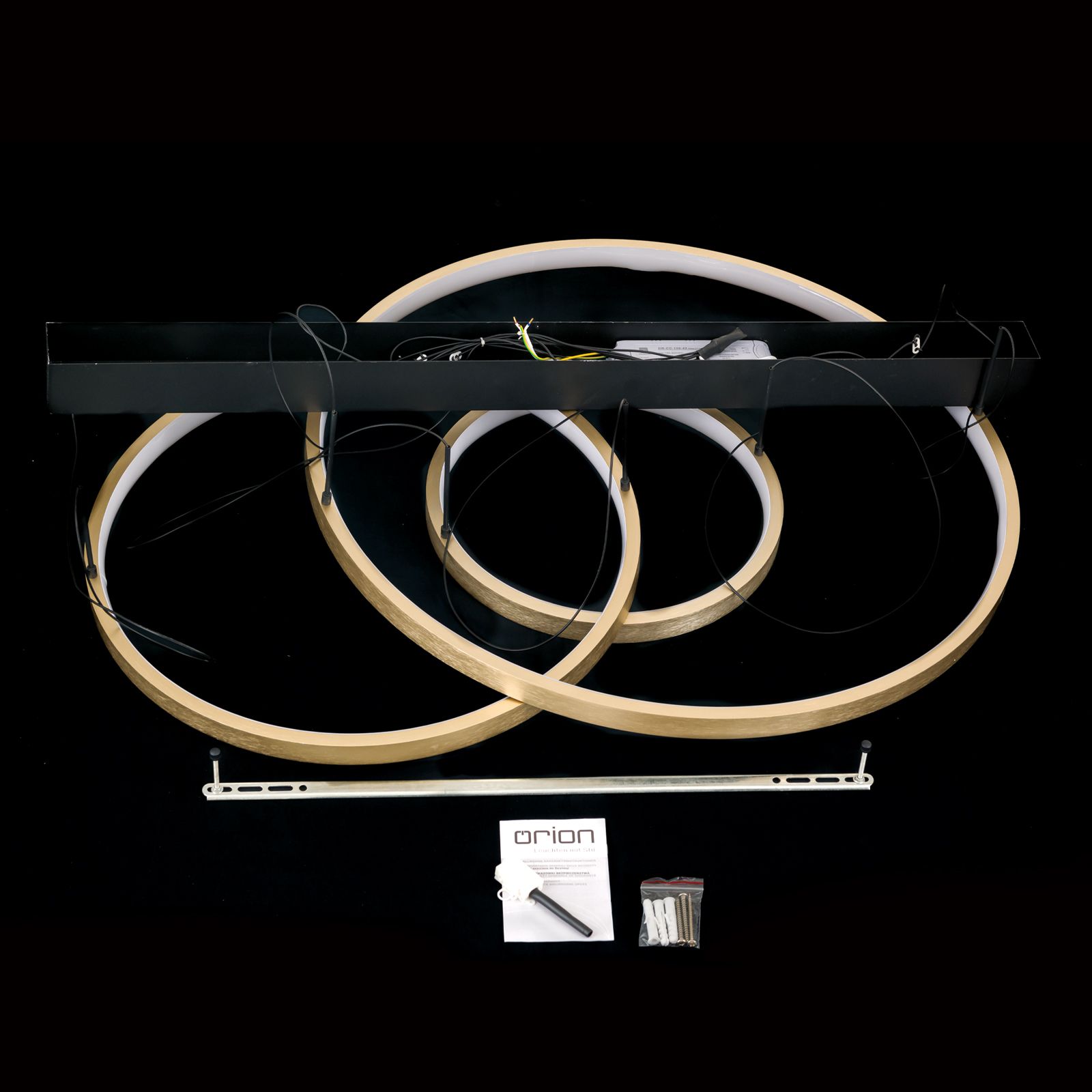 The SPHERE LED pendant lamp is an impressive example of modern design with classic and timeless elements. The black frame of the light is elegant and unobtrusive and forms a perfect base for the discreet black suspensions. Three gold-coloured rings with diameters of 80cm, 60cm and 40cm float on these, captivating with their simple elegance.