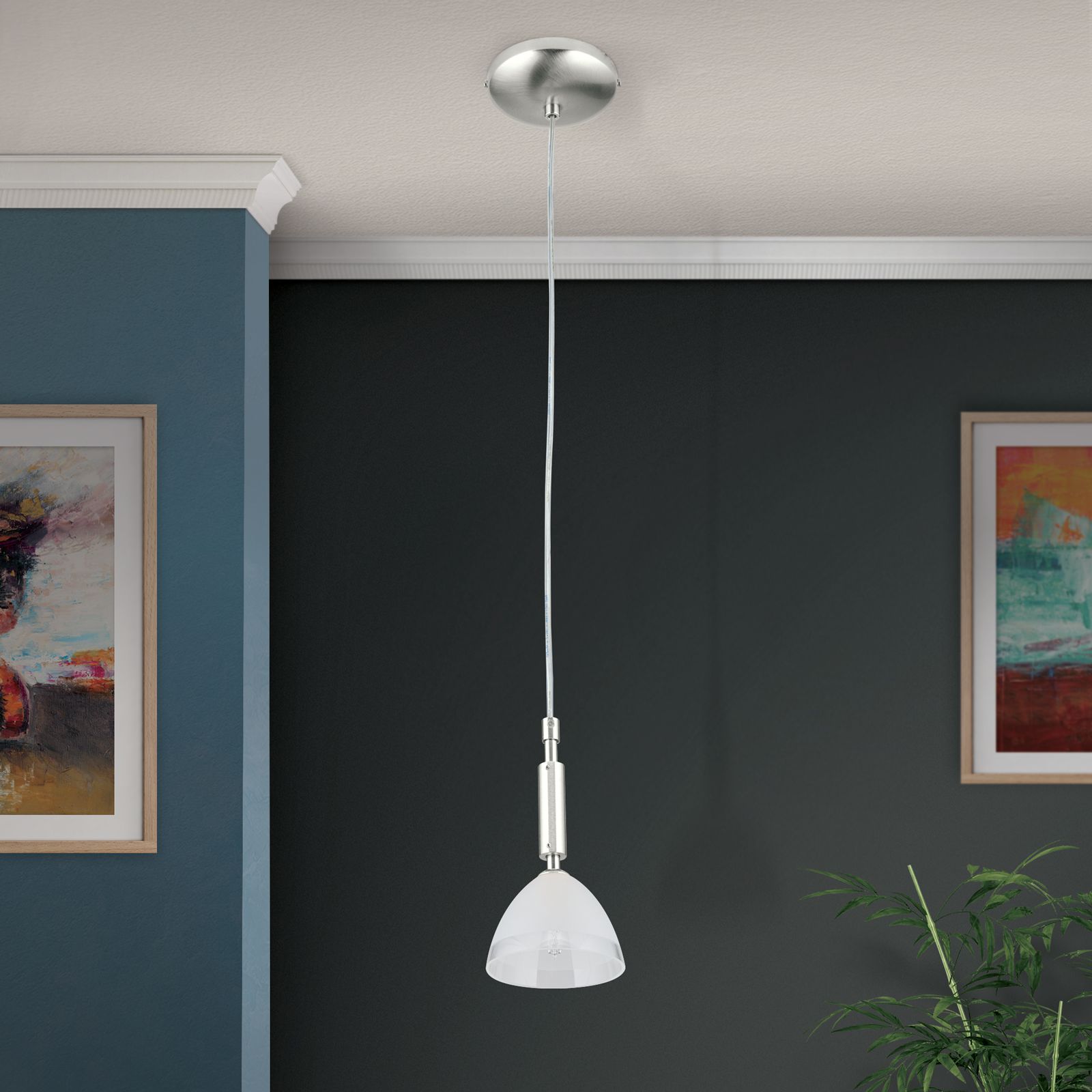 OPALDESIGN single pendant, 10cm, satin chrome finish