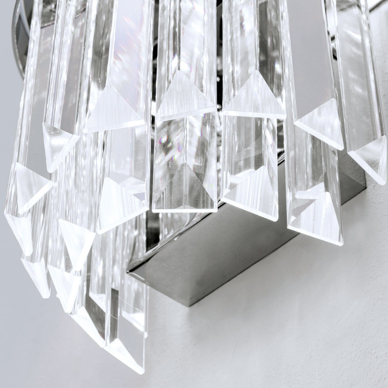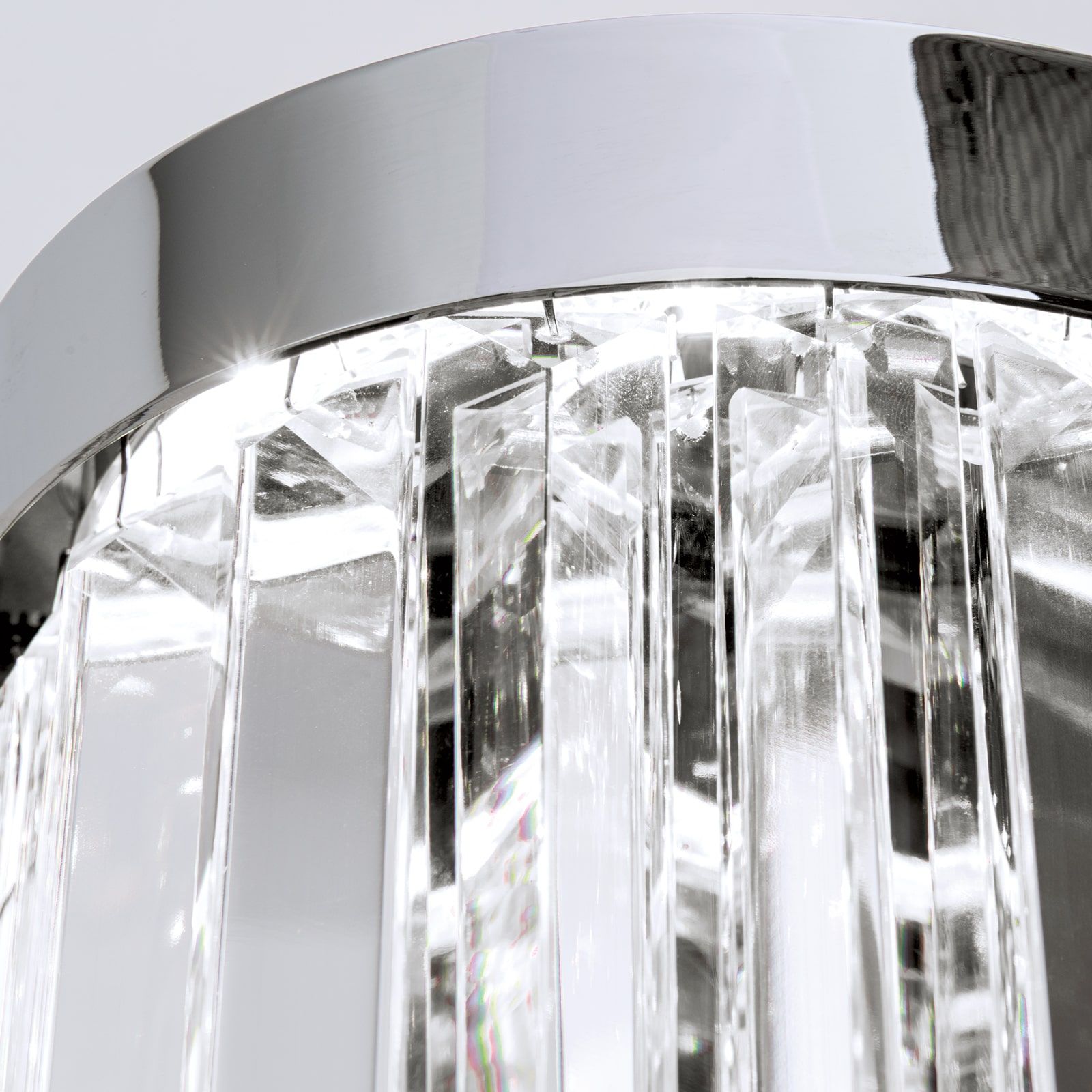 Warm white LEDs are fitted between elegant rows of crystal prisms making the wall light shine brilliantly. The almost invisible integration of illuminants and diffuser ensures glare-free and uniform lighting letting the design shine in full glory.