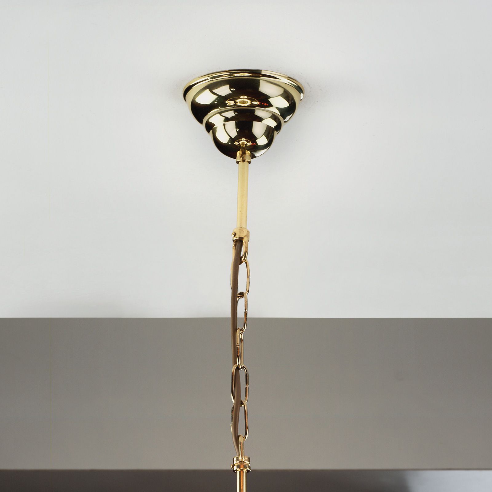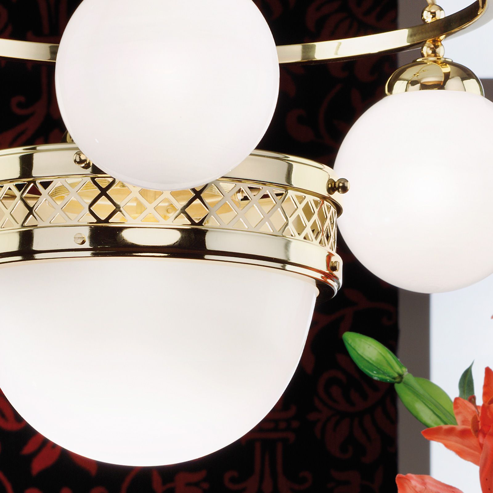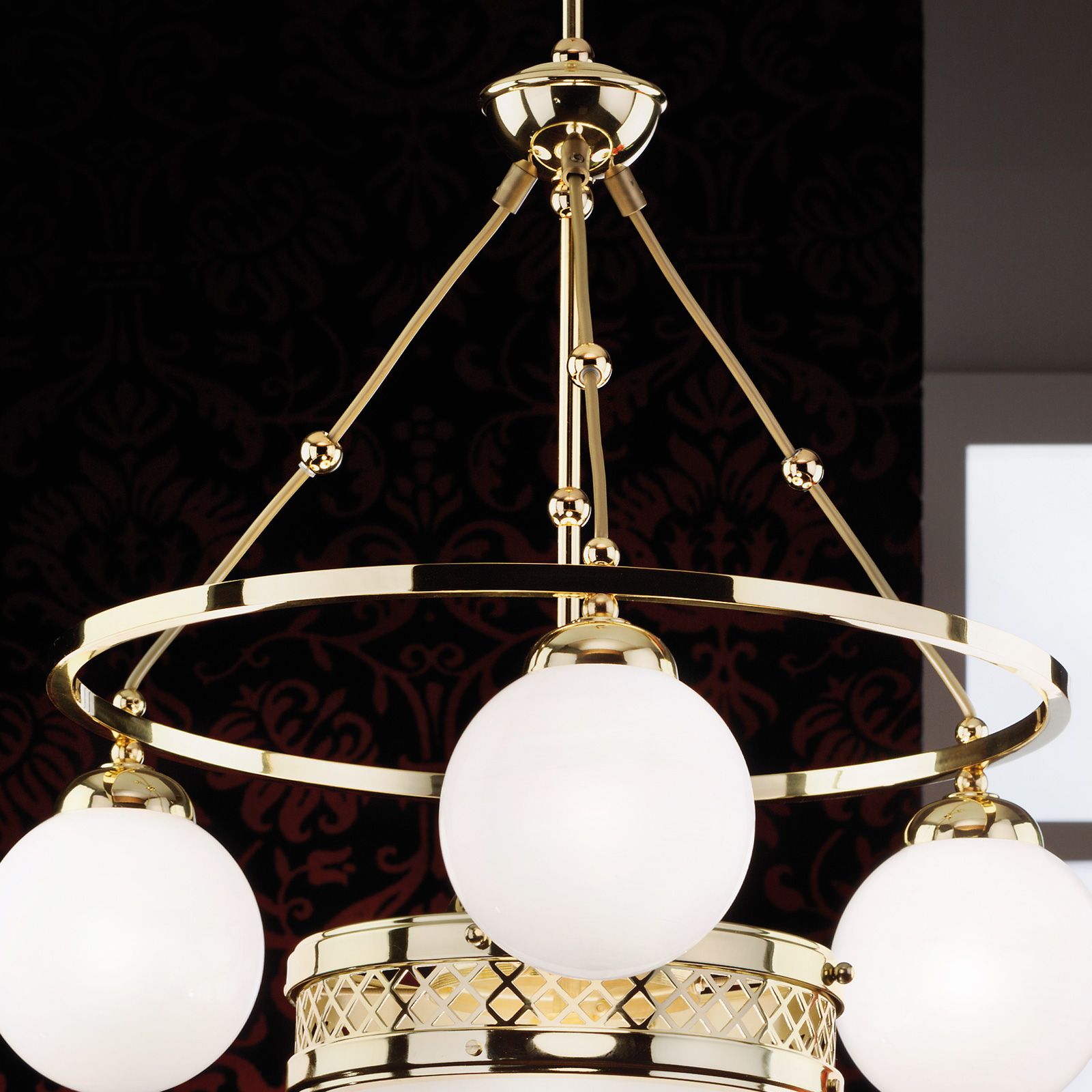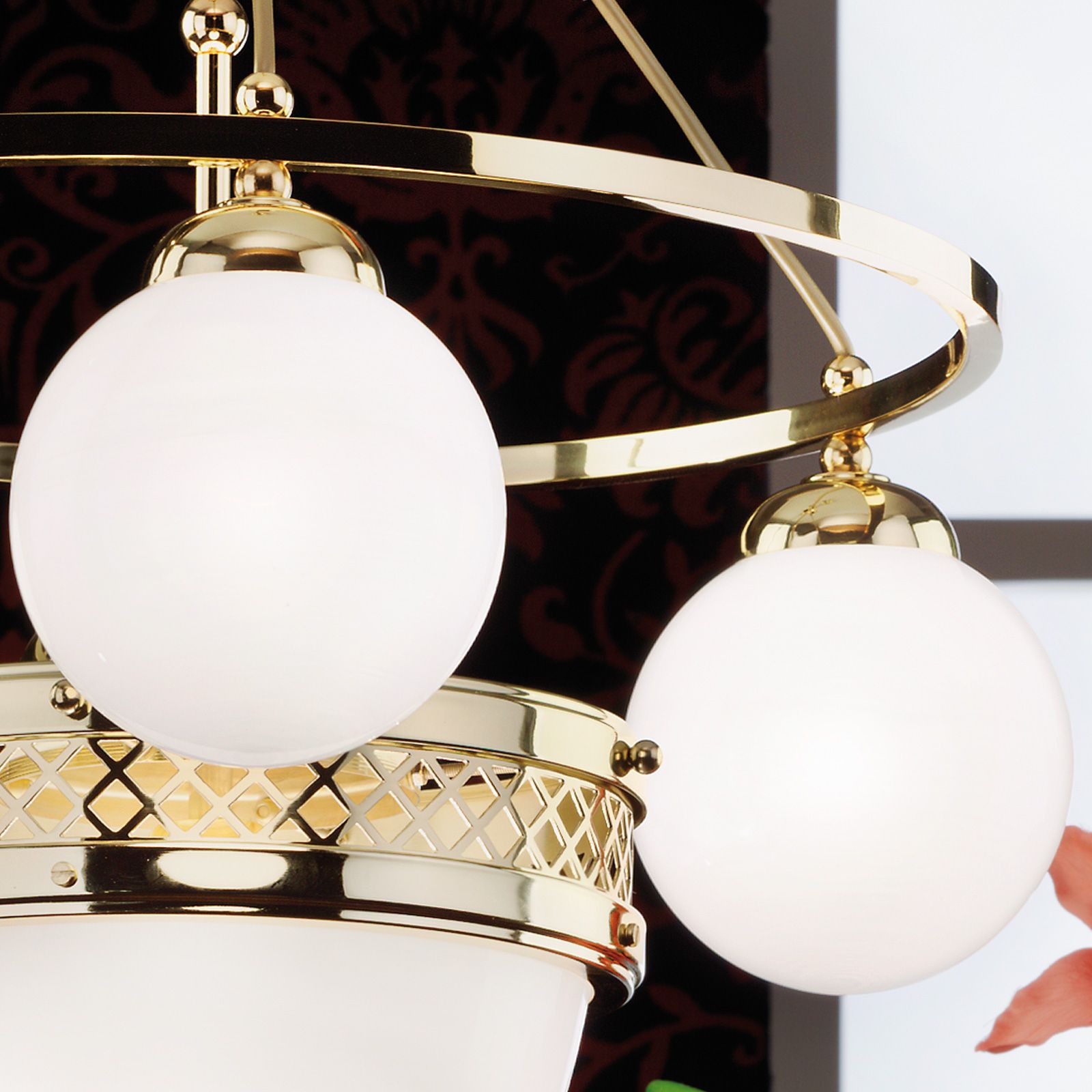Pendant lamp ALT WIEN, 3+1-flames, brass glossy, with opal glossy glass