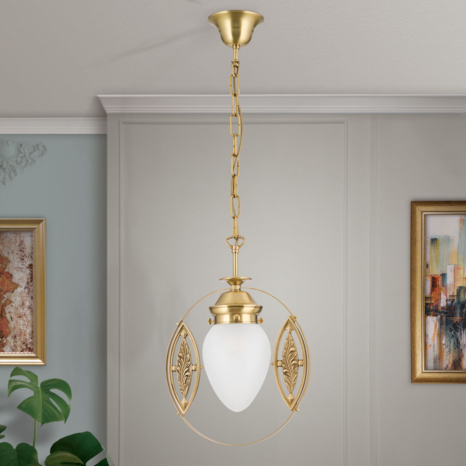 The pendant lamp from the BUDAPEST series is a fitting addition to any stylish interior with its delicate elegance. Like an Art Nouveau mobile it floats in the room giving off a warm light reflected by the metal shine. Held by the top-surround, the cone-shaped shade radiates downwards. As enchantingly original furnishing solitaire, this lamp can hang above a stylish chest of drawers or small table or serve as basic illumination in a bedroom. The pendant lamp has an E27 socket for 60 watts maximum. Energy-efficient LED bulbs help save electricity and costs.