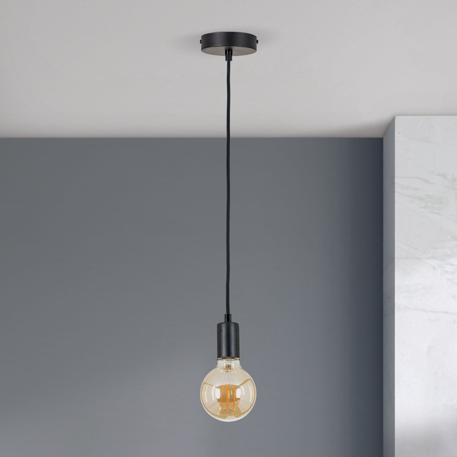 The NORA pendant lamp is the perfect accessory to give your home a modern-minimalist flair. With a suspension of 100 cm, it adds a stylish touch to any room. The black colour provides a timeless elegance and the textile cable, which is mounted on a round canopy, gives the lamp an additional refined touch.