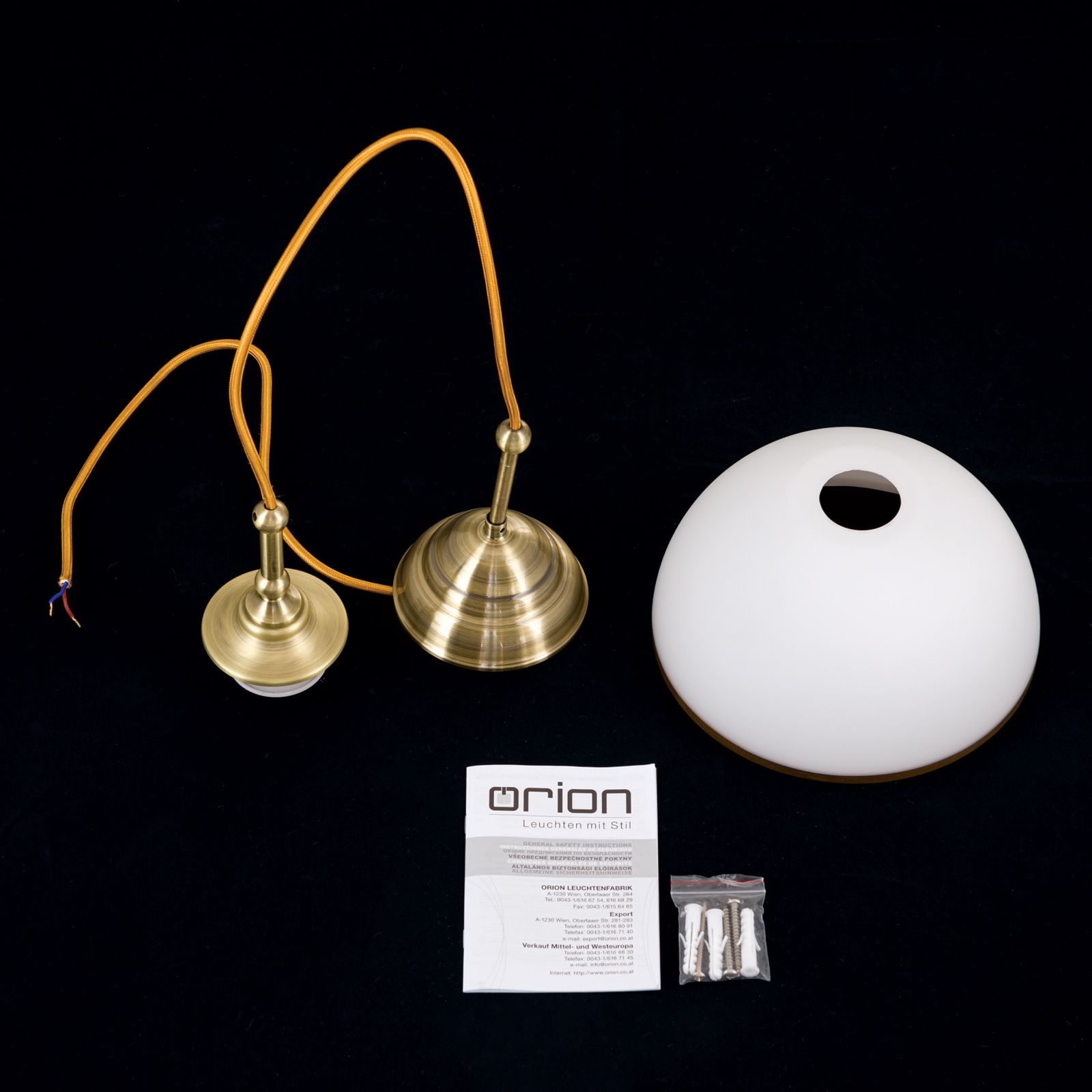 Pendant lamp OLD LAMP with textile cable, single lamp, patina