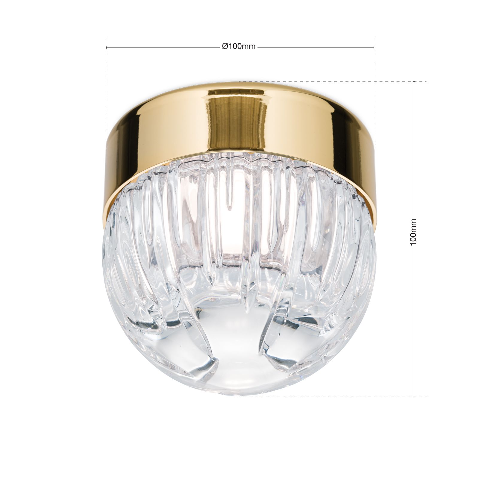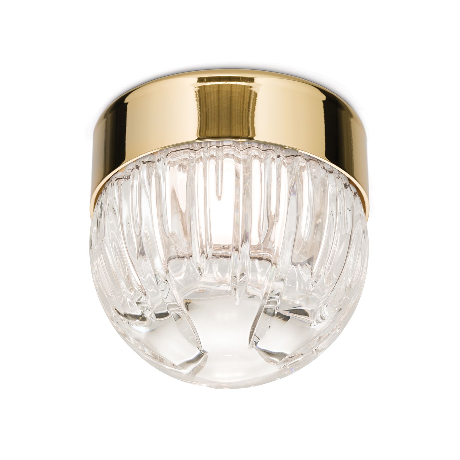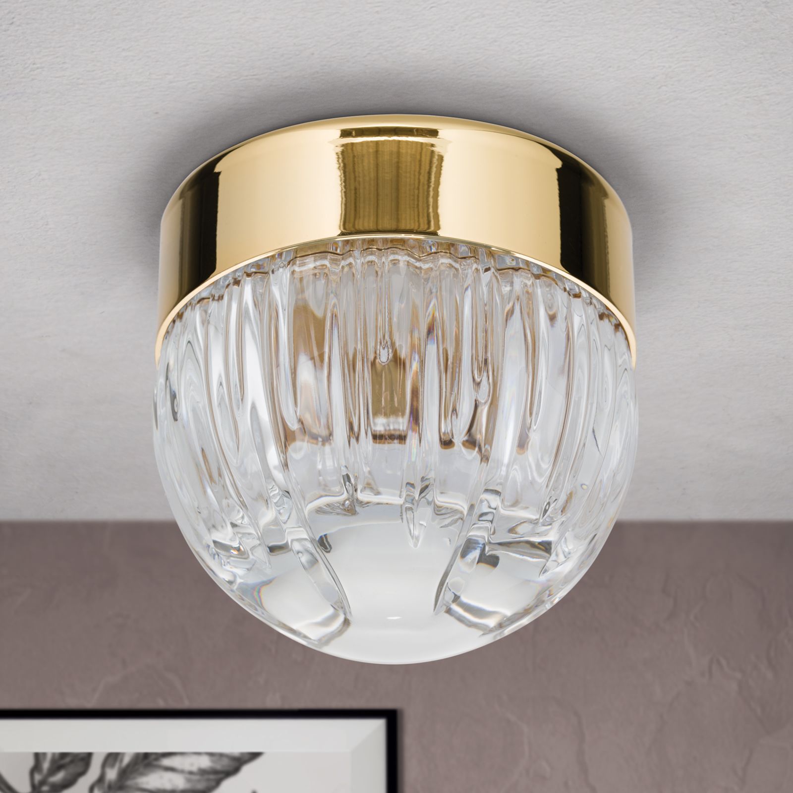 Small ceiling light BALL, gold, with clear crystal glass in line cut