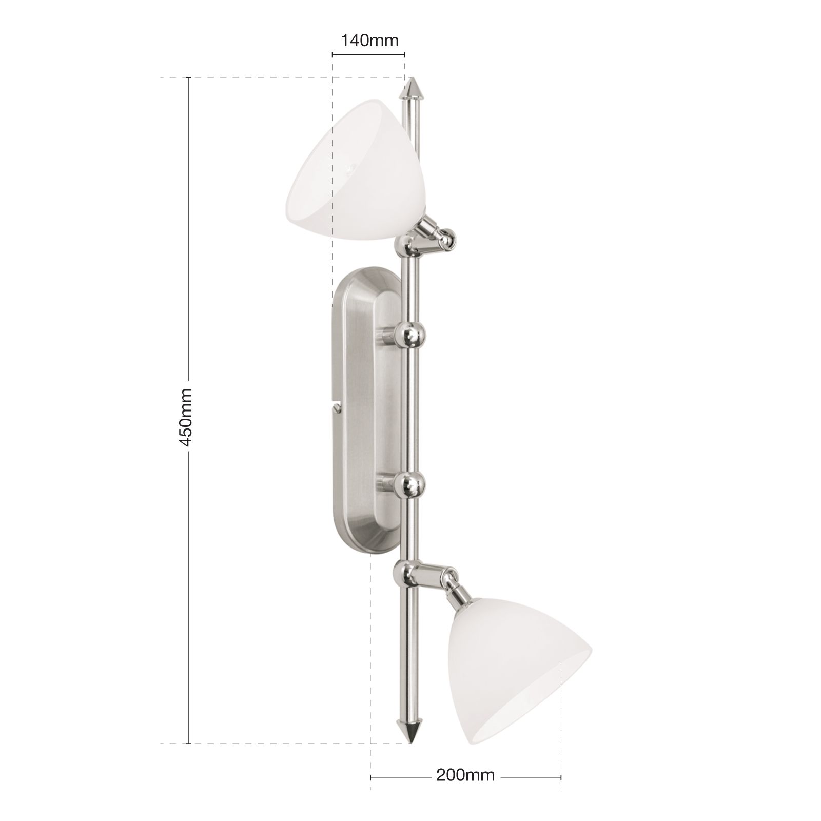 Spotlight OPALDESIGN, 2 heads, satin chrome finish with opal glass