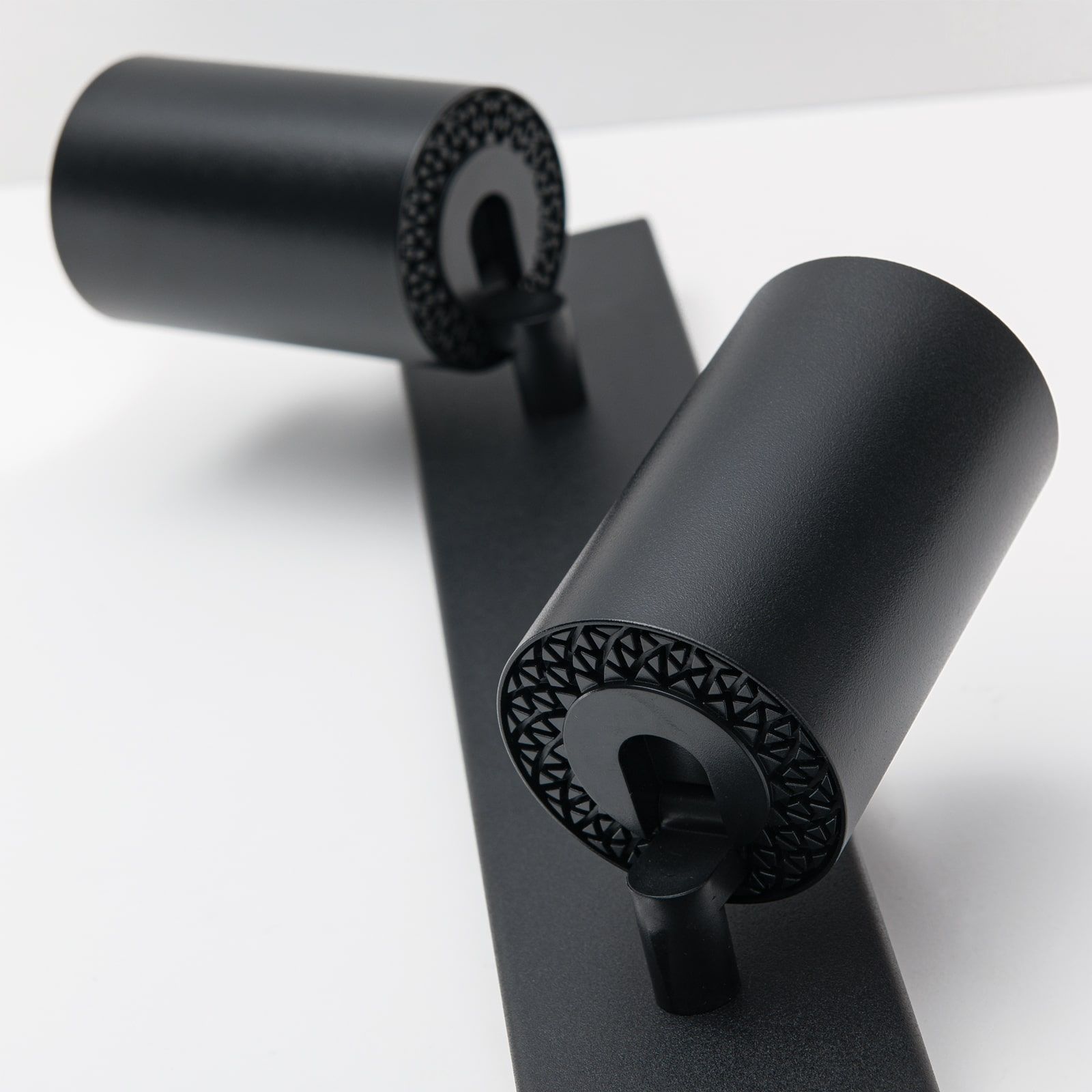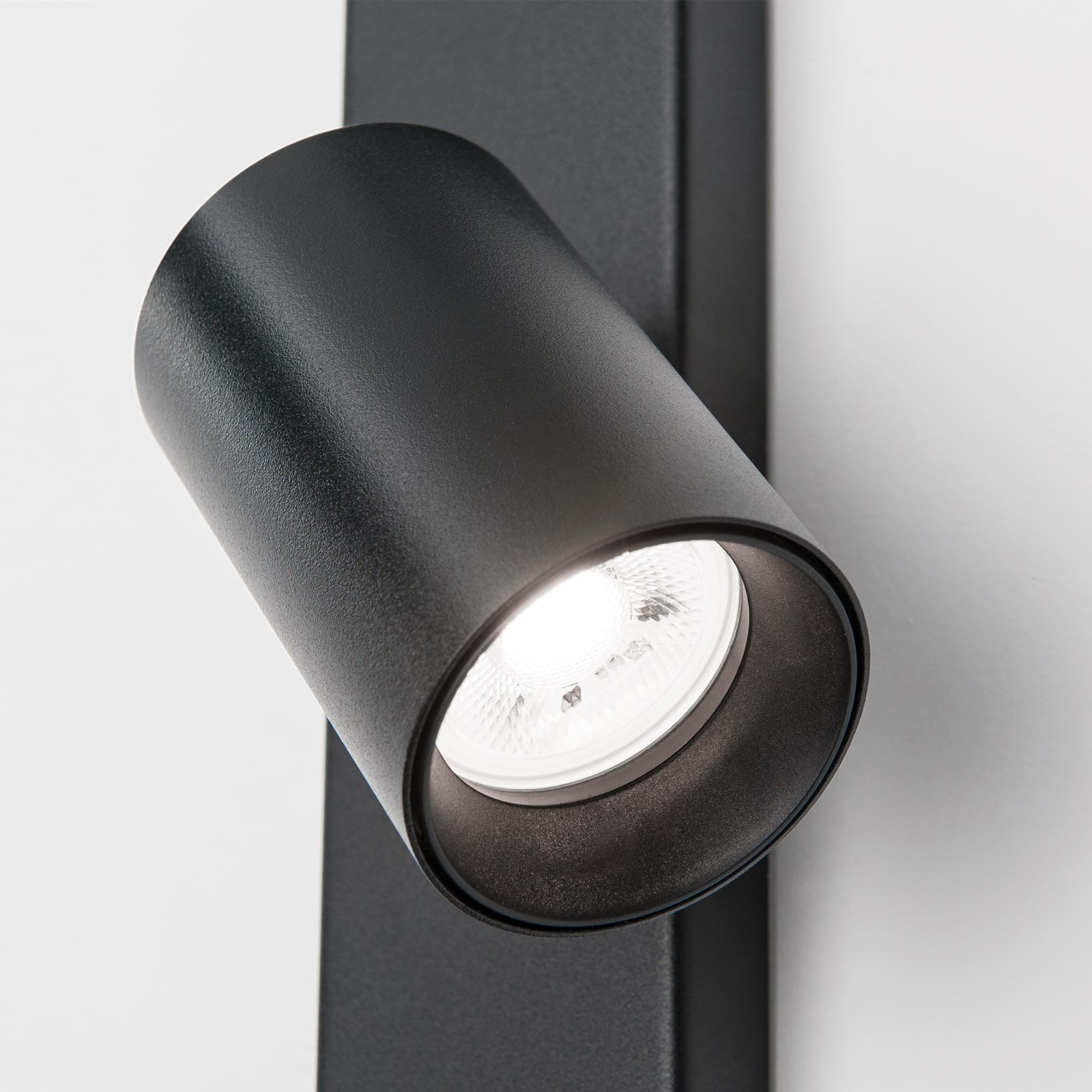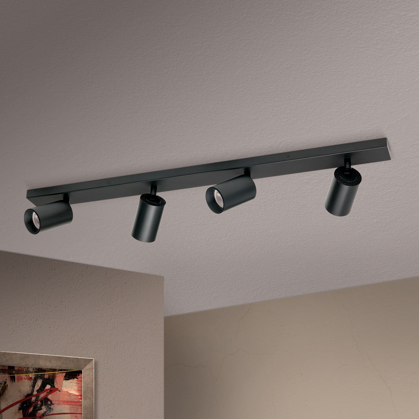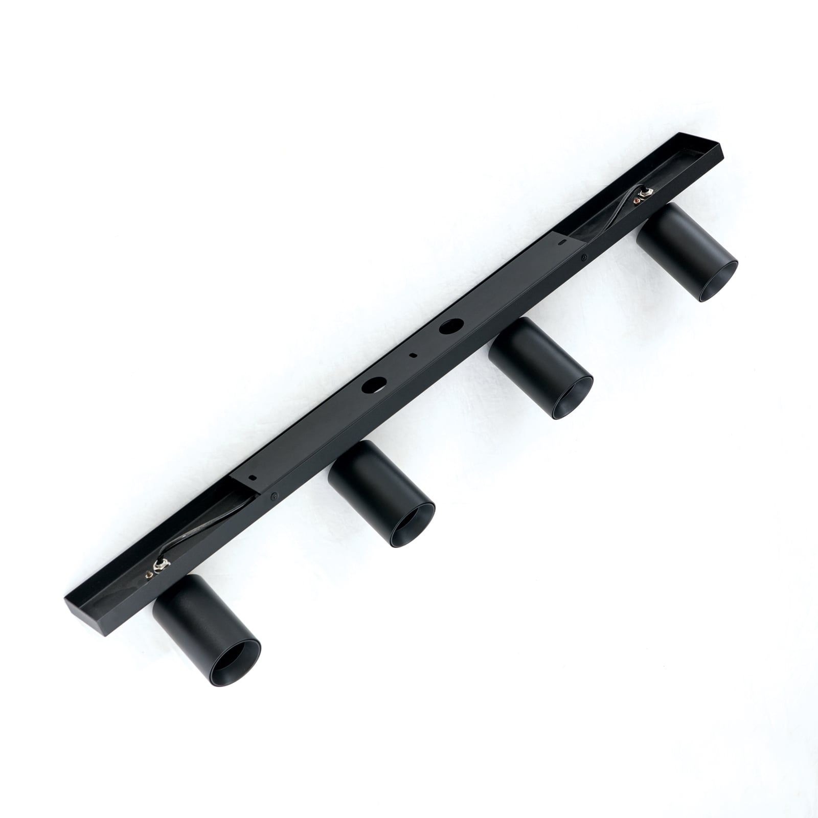 The spotlights from the SEAN series are in no way inferior to their design models from the 1960s and 1970s. Their basic geometric bodies, four cylinders, blend in with white ceilings or, in the black version, make a contemporary statement on a dark ceiling. SEAN corresponds perfectly with modern furnishing styles and is the ideal choice for decentralised room lighting concepts. The luminaire strip can be mounted horizontally or vertically on ceilings as well as on walls. This makes them suitable for any type of spot lighting: a picture gallery, individual decorative objects on shelves or dressers, a vase of flowers. The four flames are each equipped with a GU10 socket for 13 watts maximum.