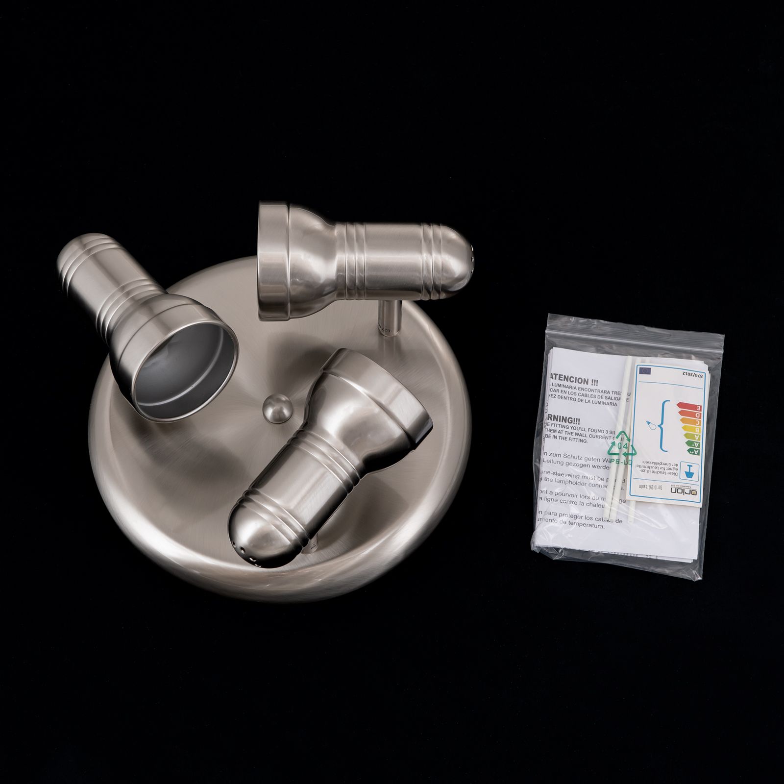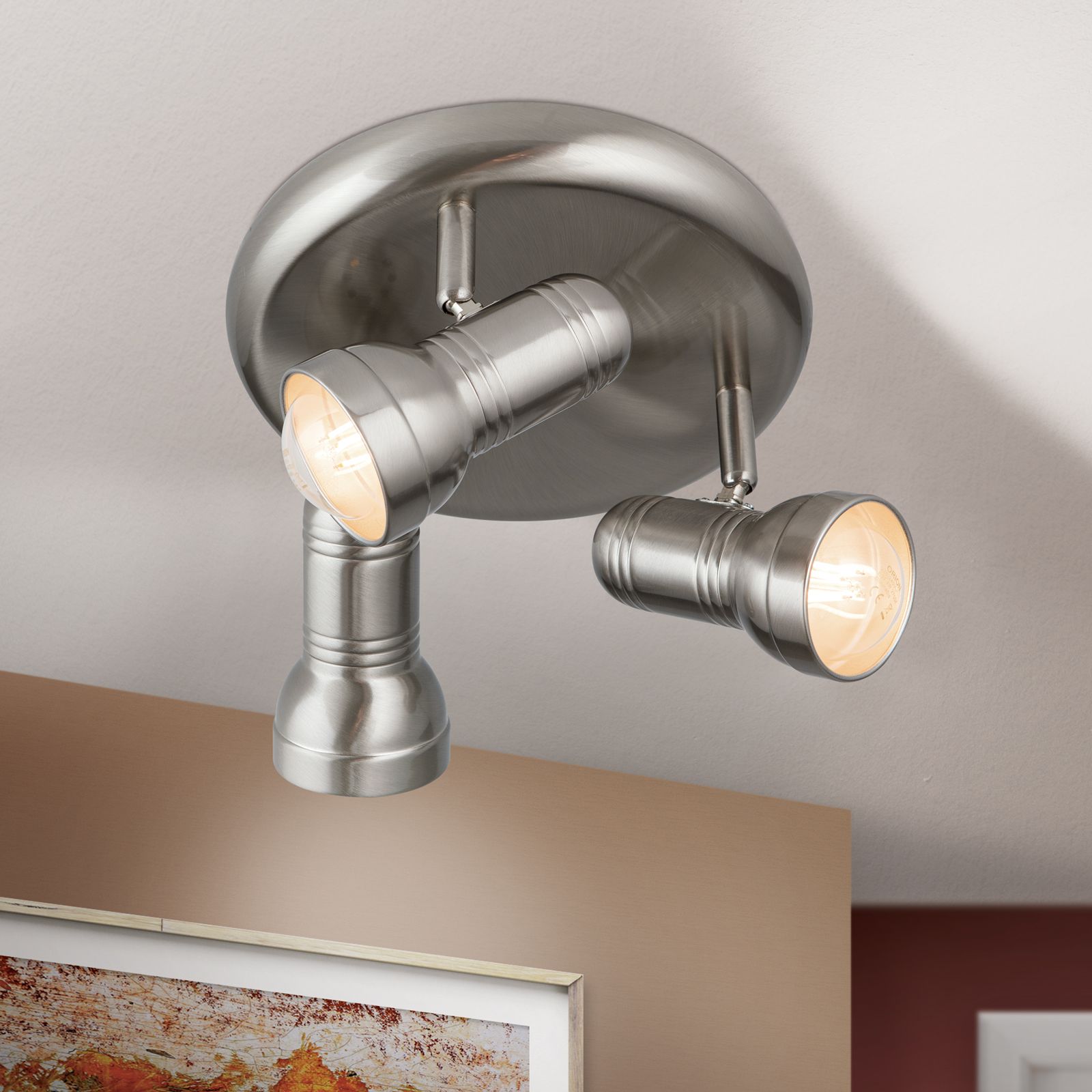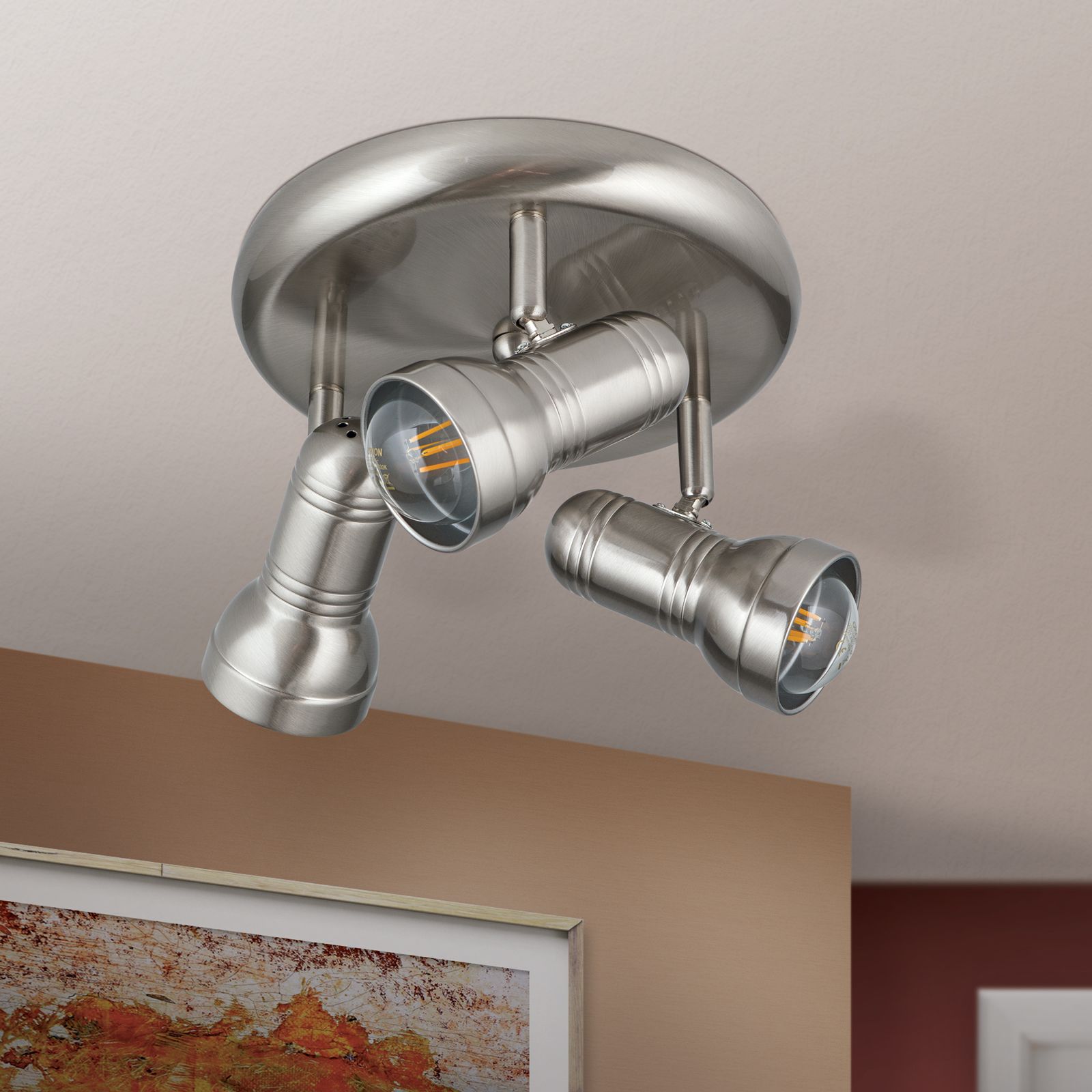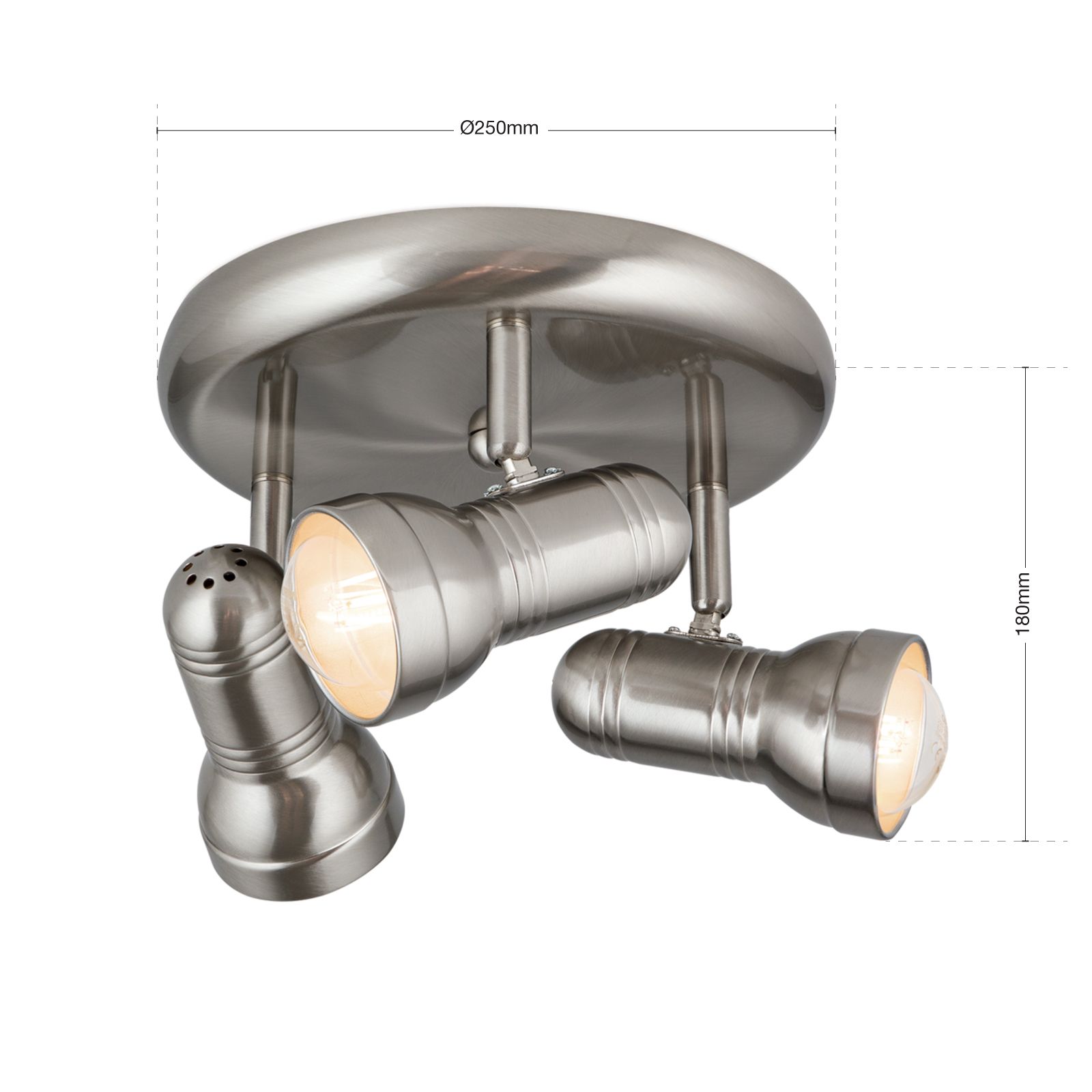 The circular arrangement of the WILHELM series' 3-flames spotlight provides balanced all-round lighting. With its discreet design, the light gently nestles against any wall and the satinated/nickel matt finish lets it correspond to a wide variety of interior styles.